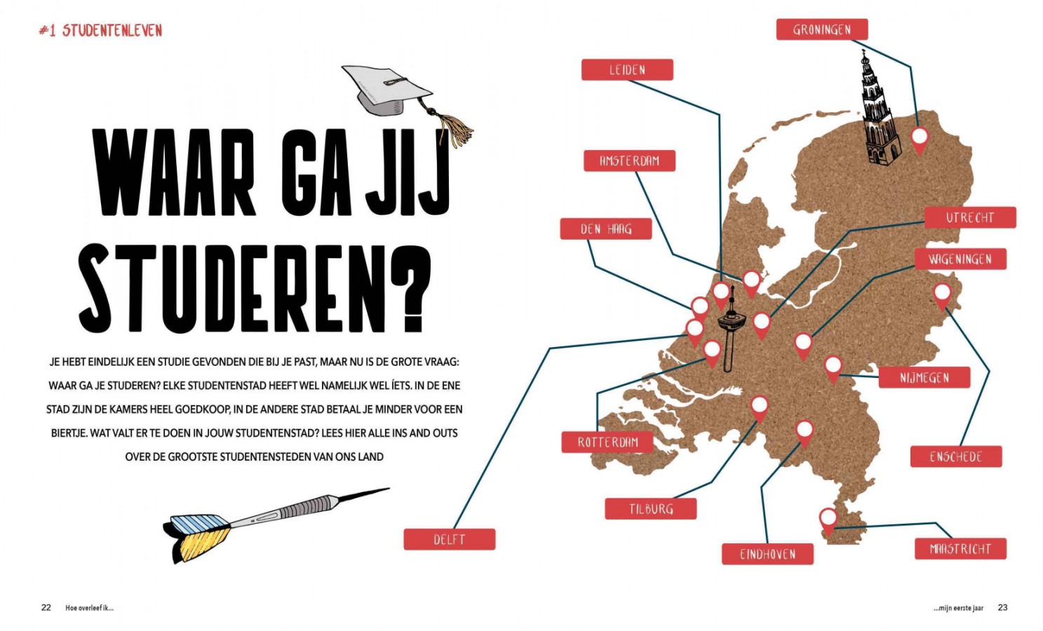 Hoe doe je dat? Waar moet je beginnen? Wat wil je? Een studentenhuis, een appartement of een hospita? Lees hoe andere eerstejaars het hebben aangepakt en hoe zij financieel hun eerste jaar hebben overleefd. Deze gids helpt je op weg met informatie en tips over wonen, lenen, werken, koken, vrije tijd en nog veel meer!